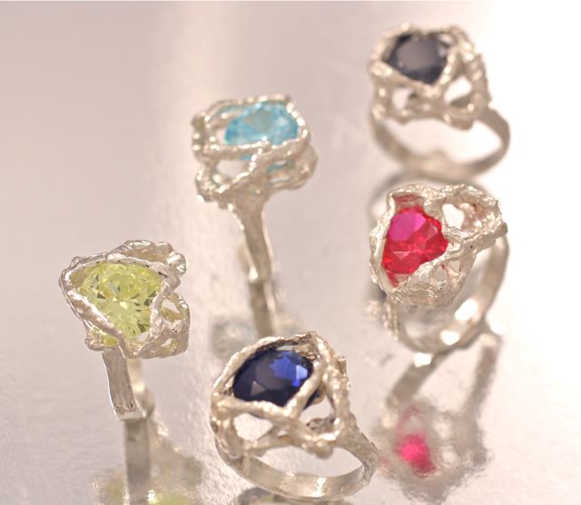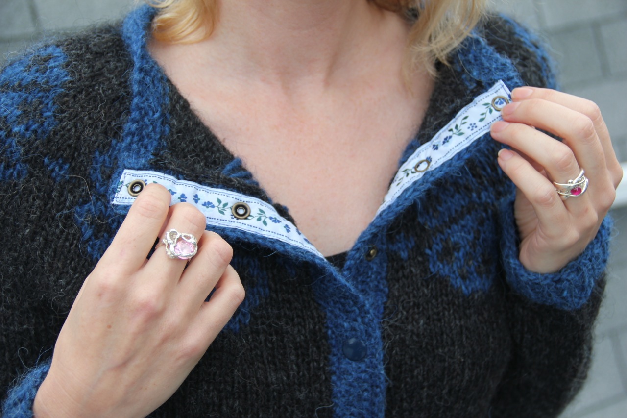 That pink ring in the last picture, BTW, is also from Iceland. I bought it at a jewellery shop called Gullkunst Helgu on the main shopping street in Reykjavik. Their designs are absolutely stunning, and, I’m told, are inspired by the landscape and geography of Iceland itself. The uneven, ‘extruded’ look of the silver on this ring is meant to be reminiscent of the rugged lava field landscape. I just love it. But I had a hard time settling on one piece to buy as I thought all their designs were amazing. Here’s a closer look at this ring design from a photograph on Gullkunst Helgu’s website: