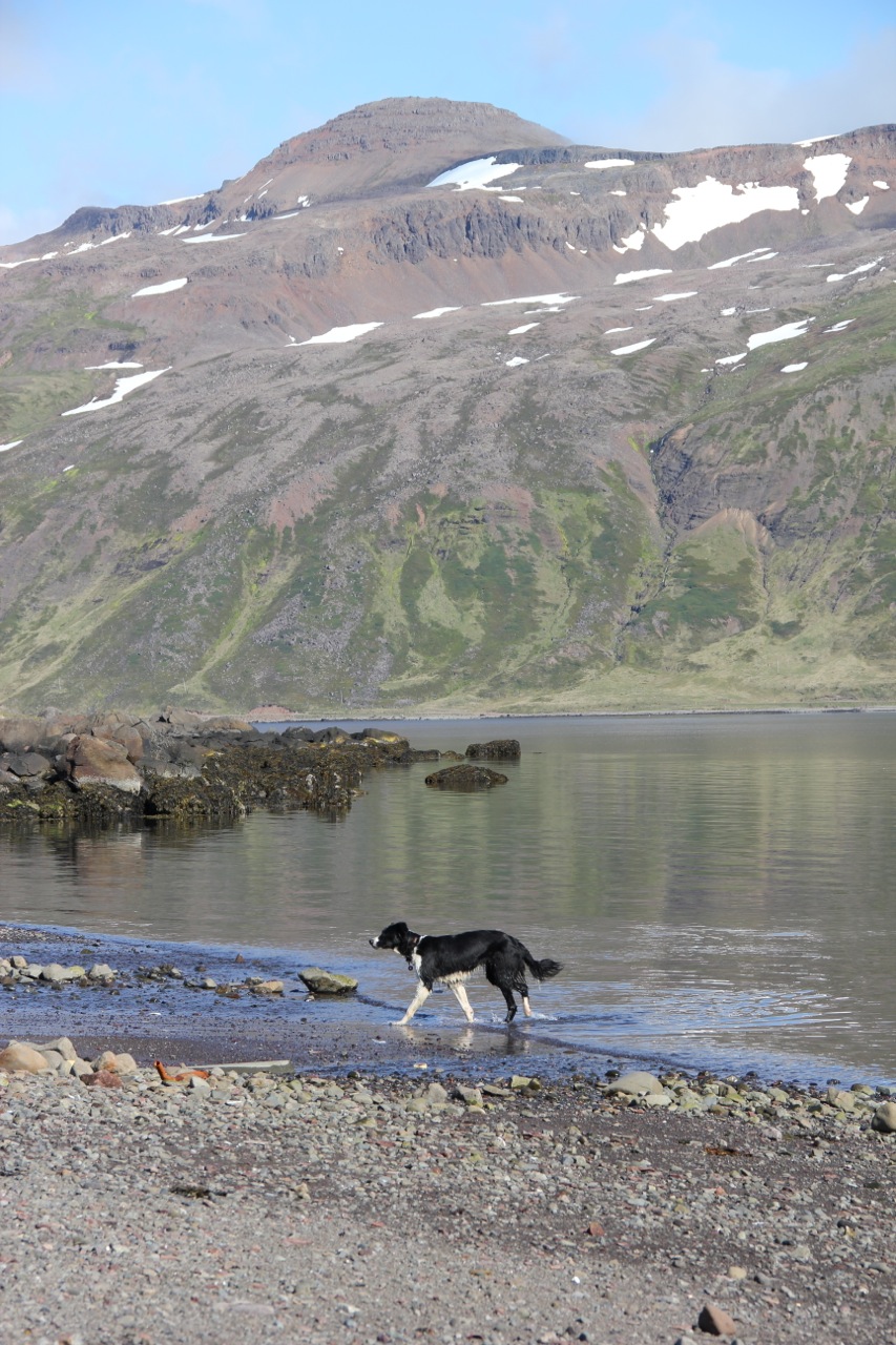 Below is Freyja, the happiest dog in the world. She lives at the Hotel Djupavik, and spends her days chasing birds, eating sheep shit, and taking visitors on walking tours of the area. I have never met a more energetic and all around groovy dog. I adore the name Freyja, which is the name of an Old Norse goddess.