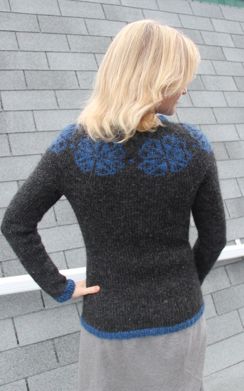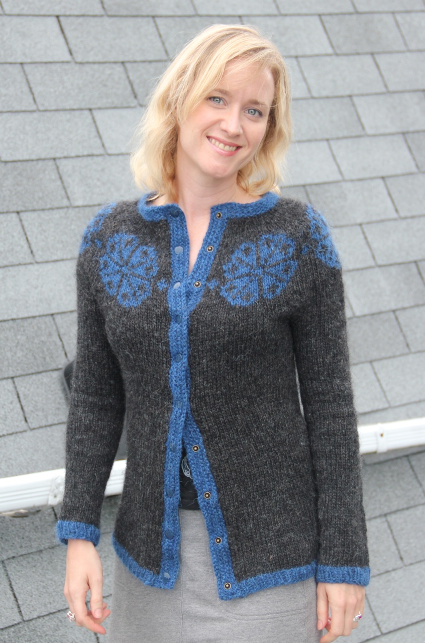 To my surprise, this is one of my most-wearable, favourite garments I’ve knit! Despite being fairly itchy, the Lopi yarn has great structure and has retained its shape without sagging or pilling over numerous wears. This is my number one issue with most of the sweaters I knit — they look like a hobo’s been living in them after only a few wears. Not so this cardigan. And the itch-factor isn’t really an issue, since I’m always wearing it over something else. Some knitters who use Lopi swear by soaking the sweater in water and hair conditioner to soften the fibers; I haven’t tried this myself.