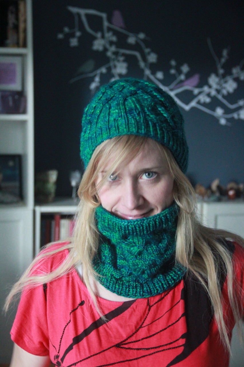 Why I love it: this is the perfect neckwarmer. I have knit other cowls that are simply too wide — they gape open at the neck which makes them pretty useless as neckwarmers. Fine for decoration, sucky for an actual Canadian winter. This cowl cozies up around the neck without feeling restrictive.