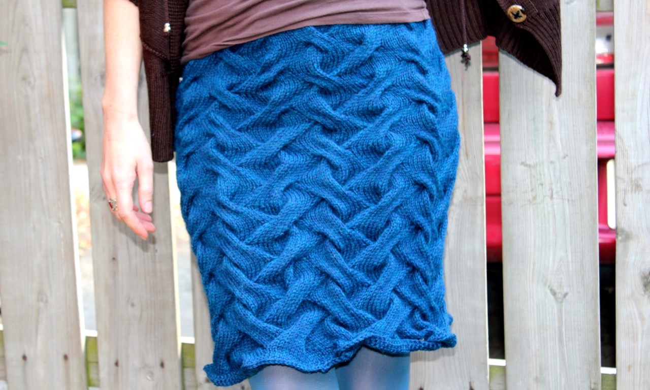 My advice for you if you’re going to try knitting skirts is: go for it! Choose a yarn with good structure that won’t stretch or sag. Check your gauge to see if the knitted fabric will be too see-through and adjust accordingly. Even if you wanted to wear a slip with your skirt I find it’s nearly impossible to even find slips these days…they’re like a relic from the 50s now. Choose a pattern that includes an elastic waistband or add one yourself by weaving in some elastic cord. Wool skirts are very forgiving and flattering and will never let you down with VPLs (visible panty lines) — unless you’re wearing underwear that’s 2 sizes too small in which case I can’t help you anyway. 🙂