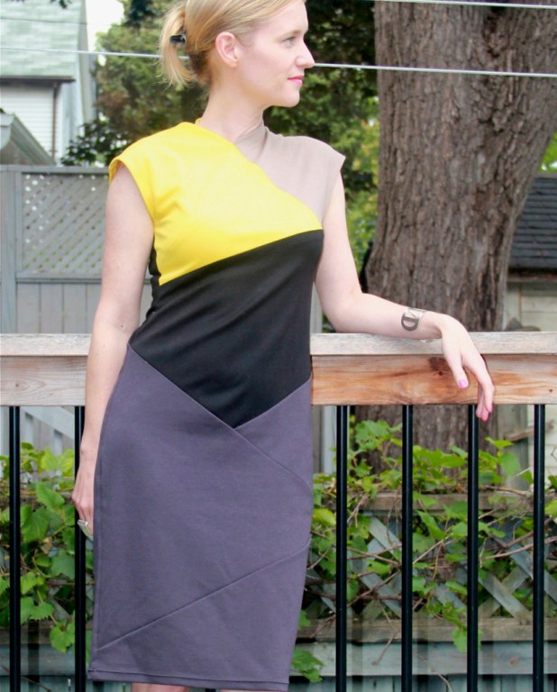 February 28th, 2014: Come across Diagonal Lines Dress on BurdaStyle website. Lose my shit over this awesome dress. Asian-inspired! Asymmetrical! Colour-blocking! Exposed zipper! Pay for & download pattern immediately. Dance around room. Consider buying matching yellow bicycle.