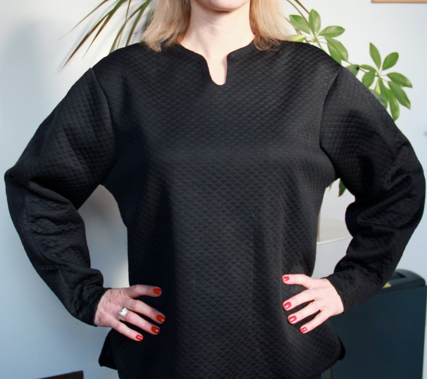 New word: sweatershirt. Not a sweatshirt, per se, but a top that looks like a tarted up sweatshirt made with sweater knits. I’m rather pleased with this one because: I got the pattern, Simplicity 0315, from a pattern swap (=free!) I used up a small amount of awkwardly-shaped leftover black sweater knit (only a few tiny scraps leftover!) I used a ready-to-wear sweater for the … Continue reading Sweatershirt and Joan Trousers